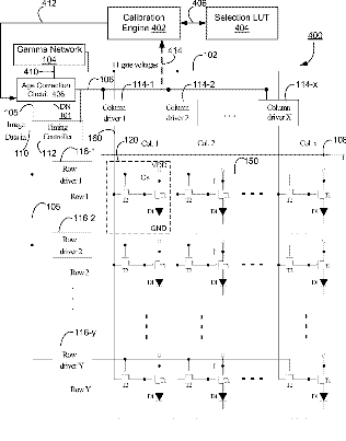 Emission control in aged active matrix OLED display using voltage ratio or current ratio with temperature compensation