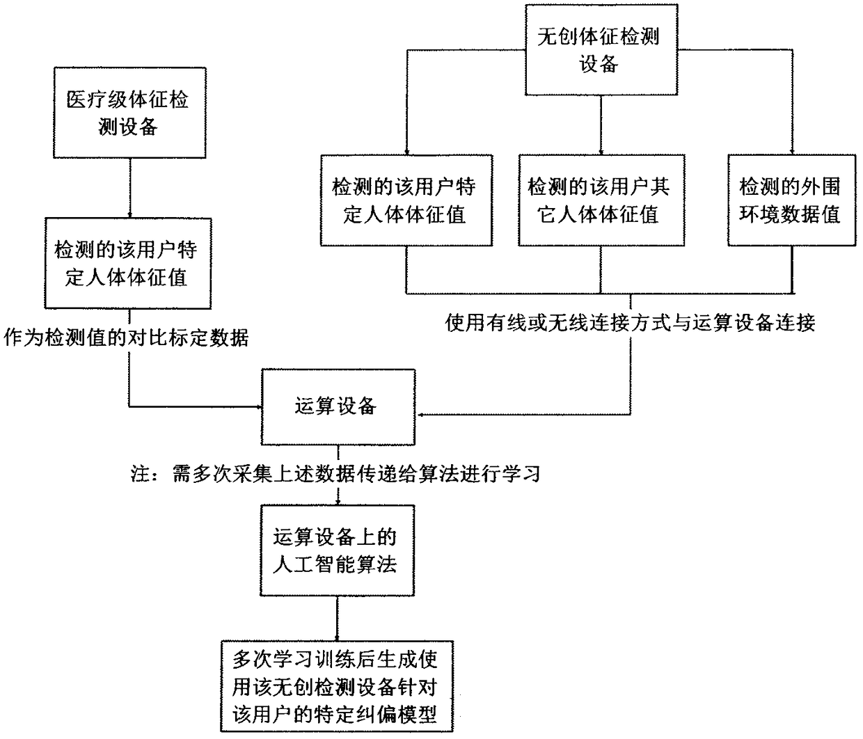 一种提高人体体征无创检测设备检测精度的人工智能纠偏方法