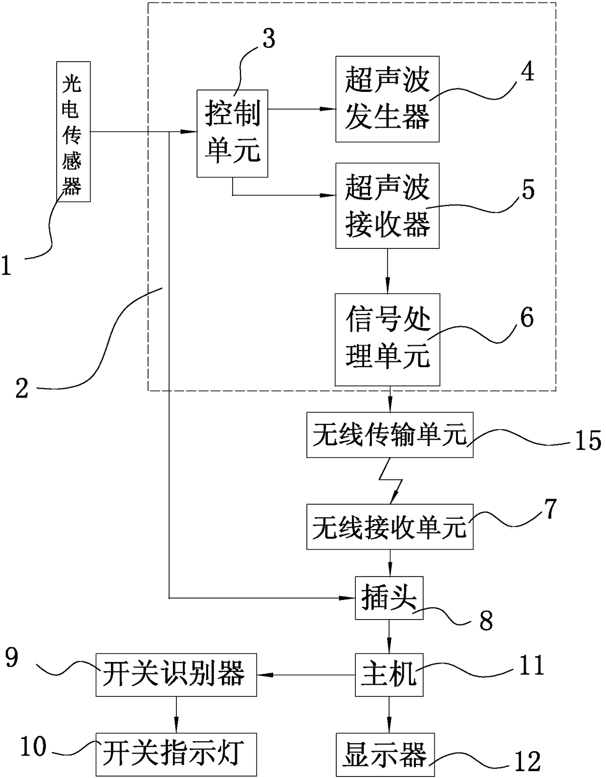 智能光电感应自动切换的无线超声检测系统