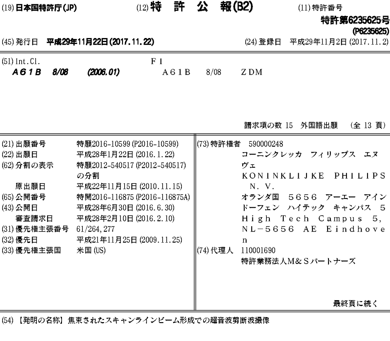 BR112012012230A2 | CN102667522A | CN102667522B | EP2504716A1 | EP2504716B1 | JP2013512026A | JP2016116875A | JP6148010B2 | JP6235625B2 | RU2012126172A | RU2552894C2 | US10368843 | US20130131511A1 | US20190314002A1 | WO2011064688A1