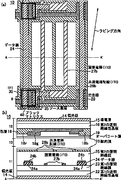 横電界方式のアクティブマトリクス型液晶表示装置