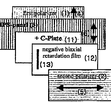 負の二軸性位相差フィルムと+C-プレートを用いた視野角の補償フィルムを含むIPS液晶表示装置