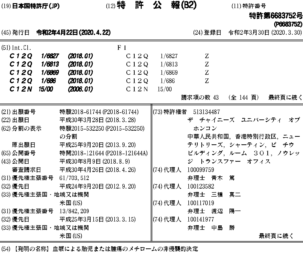 血漿による胎児または腫瘍のメチロームの非侵襲的決定