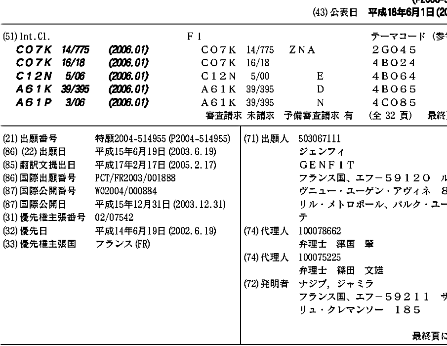 AT356832T | AU2003267493A1 | CA2489057A1 | DE60312513D1 | DE60312513T2 | DK1513878T3 | EP1513878A2 | EP1513878B1 | ES2283803T3 | FR2841249A1 | JP2006515561A | JP2006515561A5 | US20050152900A1 | WO2004000884A2 | WO2004000884A3