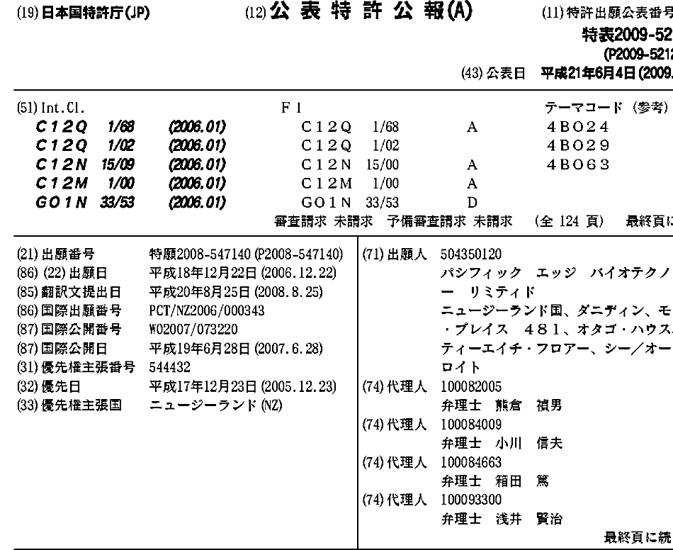 AU2006328023A1 | AU2006328023B2 | CA2640352A1 | CA2640352C | CA3015335A1 | CN101389957A | CN101389957B | EP1977237A1 | EP1977237A4 | EP1977237B1 | EP2371972A1 | EP2371972B1 | EP2392678A2 | EP2392678A3 | EP2392678B1 | ES2484702T3 | ES2525219T3 | ES2536233T3 | HK1127125A | HK1127125A1 | JP2009521215A | JP2009521215A5 | JP2014193172A | JP2014193172A5 | JP2016052329A | JP5632581B2 | JP6058780B2 | JP6218141B2 | KR101530689B1 | KR101562644B1 | KR101579934B1 | KR1020080102360A | KR1020130105764A | KR1020150005726A | NZ544432A | NZ544432B | NZ586616A | NZ597363A | NZ597363B | SG143707A1 | US10422005 | US20090181384A1 | US20160068916A1 | US20200140955A1 | WO2007073220A1 | WO2007073220A9
