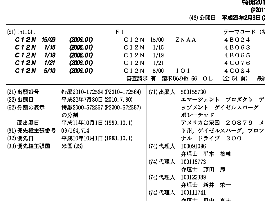 AU1999064100A1 | CA2344622A1 | EP1117779A1 | EP1117779A4 | JP2002525110A | JP2011019518A | JP4732585B2 | US20030235592A1 | US20090053292A1 | US6541616 | US7311917 | US7846451 | WO2000018910A1 | WO2000018910A9