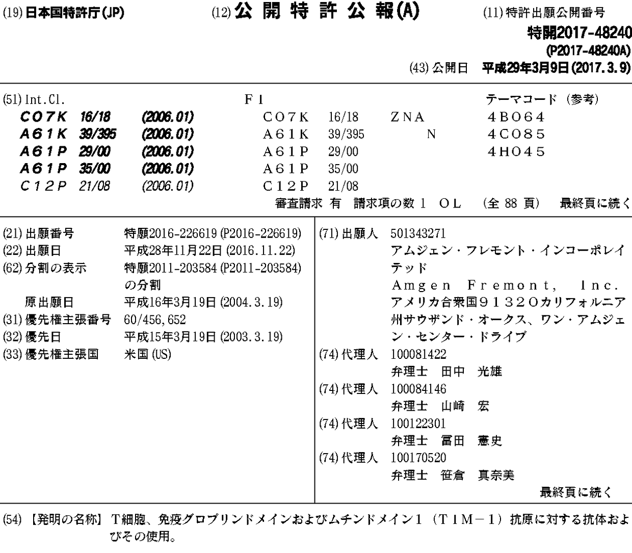 AU2004224390A1 | AU2010227016A1 | CA2519528A1 | CA2519528C | DK1613750T3 | EP1613750A2 | EP1613750A4 | EP1613750B1 | EP3000886A1 | ES2557769T3 | JP2007525434A | JP2012001561A | JP2014144971A | JP2017048240A | JP2017048240A5 | JP2018150305A | JP6103801B2 | US20050084449A1 | US20120251555A1 | US20170218067A1 | US8067544 | US9580503 | WO2004084823A2 | WO2004084823A3