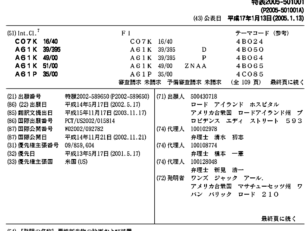 AT480251T | CA2447367A1 | CA2447367C | DE60237624D1 | EP1429797A2 | EP1429797A4 | EP1429797B1 | JP2005501001A | JP2005501001A5 | JP2008285485A | JP2010046086A | US20020110559A1 | US20050113329A1 | US20100172832A1 | US6835370 | WO2002092782A2 | WO2002092782A3