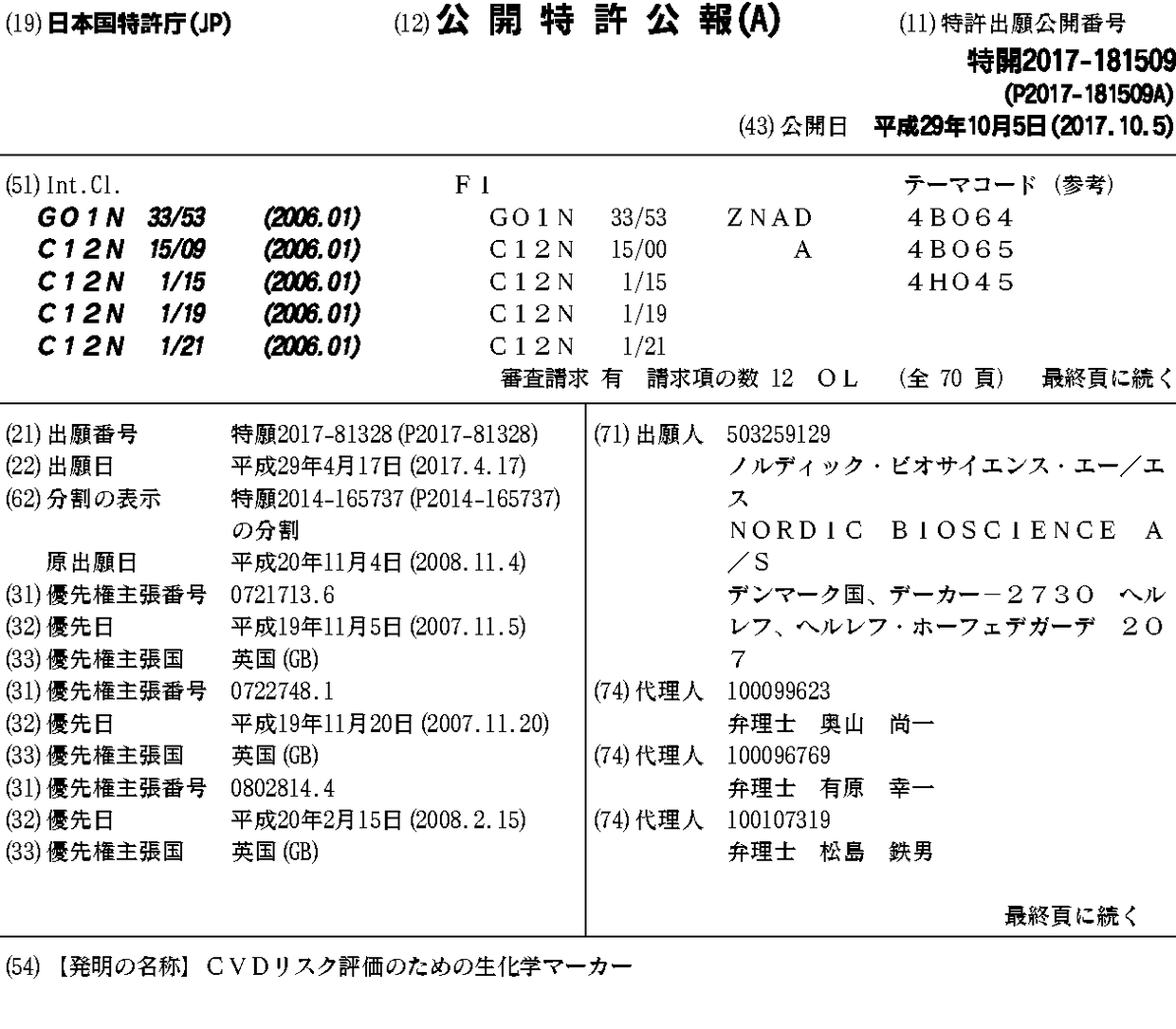 CVDリスク評価のための生化学マーカー
