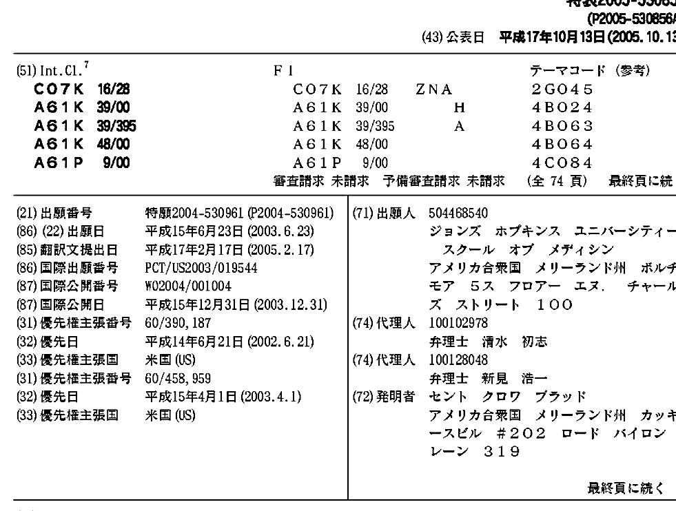 AU2003278161A1 | AU2003278161A8 | EP1534331A2 | EP1534331A4 | EP1534331B1 | EP2365004A2 | EP2365004A3 | EP2365004B1 | JP2005530856A | US20060275287A1 | US20110104059A1 | WO2004001004A2 | WO2004001004A3