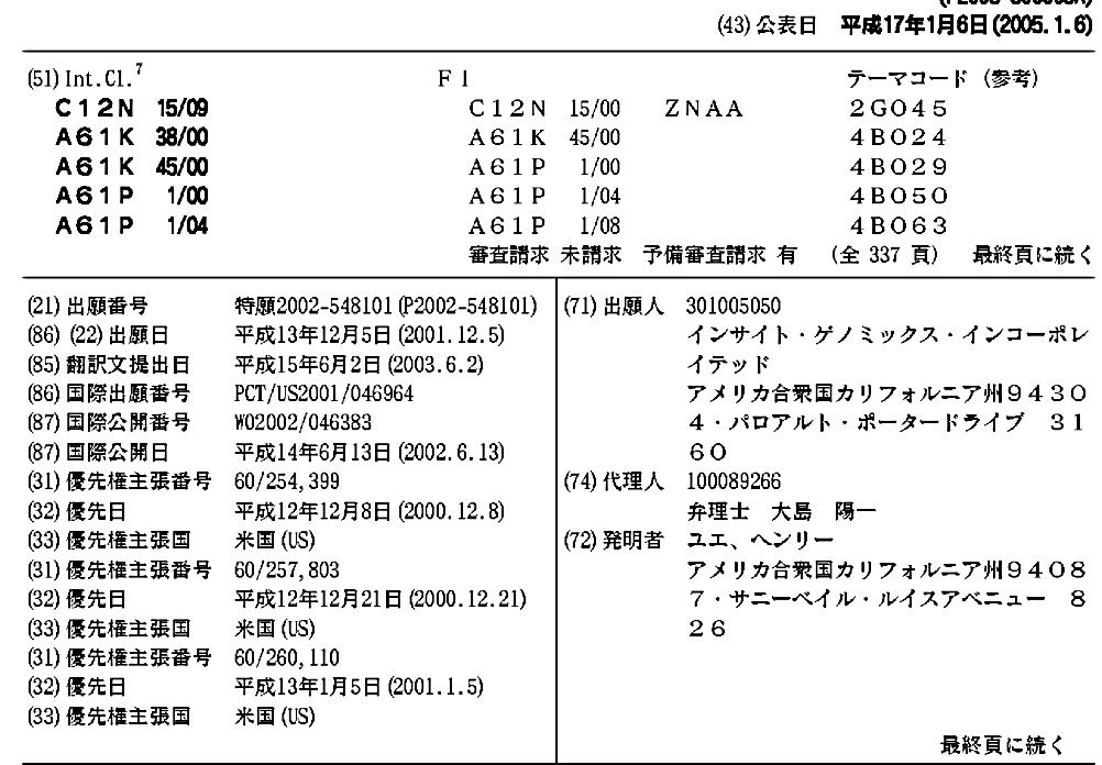 AU2002027280A1 | CA2436732A1 | EP1358325A2 | JP2005500005A | US20050101529A1 | WO2002046383A2 | WO2002046383A3