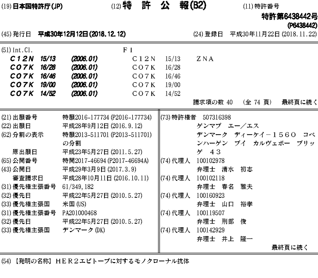 HER2エピトープに対するモノクローナル抗体