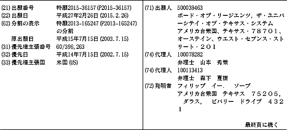 AT491725T | AU2003247869A1 | AU2003247869B2 | AU2003247869C1 | AU2009222538A1 | AU2009222538B2 | BRPI0312692A2 | CA2491310A1 | CA2491310C | CA2894009A1 | CA2894009C | CN100506846C | CN101653603A | CN101653603B | CN104001181A | CN104001181B | CN104130327A | CN104225610A | CN104225610B | CN1668644A | DE60335383D1 | DK1537146T3 | DK2269656T3 | DK2283868T3 | EP1537146A2 | EP1537146A4 | EP1537146B1 | EP1537146B9 | EP2263697A2 | EP2263697A3 | EP2266624A2 | EP2266624A3 | EP2266624B1 | EP2269656A2 | EP2269656A3 | EP2269656B1 | EP2281578A2 | EP2281578A3 | EP2283868A2 | EP2283868A3 | EP2283868B1 | EP2283869A2 | EP2283869A3 | EP2357009A1 | ES2358730T3 | ES2358730T9 | ES2524325T3 | HK1075256A | HK1075256A1 | HK1152491A | HK1152491A1 | HK1200360A | HK1200360A1 | HK1202437A | HK1202437A1 | HK1202561A | IL165267A | IL165267D0 | IL195328A | IL195328D0 | IL223907A | IL223908A | JP2005537267A | JP2005537267A5 | JP2010254723A | JP2010254723A5 | JP2011213737A | JP2013224337A | JP2015134791A | JP2015134791A5 | JP2016135819A | JP2016135819A5 | JP2016164197A | JP2016164197A5 | JP4827411B2 | JP5408799B2 | JP5781571B2 | JP6188258B2 | KR101073306B1 | KR101257584B1 | KR101669709B1 | KR101690826B1 | KR1020050027107A | KR1020110025885A | KR1020110027848A | KR1020110027849A | KR1020120068769A | KR1020120132574A | KR1020120135332A | KR1020150021911A | MX337052B | MXPA05000652A | NZ537690A | NZ537690B | NZ574146A | NZ574146B | NZ584715A | NZ584715B | NZ596825A | NZ596825B | NZ611387A | NZ611387B | PT1537146E | PT2269656E | SI2269656T1 | US20040170620A1 | US20040175378A1 | US7572442 | WO2004006847A2 | WO2004006847A3 | ZA200500363B