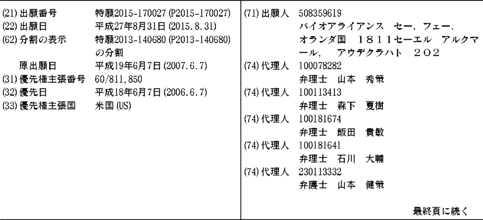 AU2007258473A1 | AU2007258473B2 | BRPI0712850A2 | BRPI0712850A8 | CA2652703A1 | CA2652703C | CN101516912A | CN101516912B | CN103709252A | CN103709252B | DK2044120T3 | EP2044120A2 | EP2044120B1 | ES2718952T3 | HK1130266A | HK1130266A1 | HUE043255T2 | IL195098A | IL195098D0 | IL242653A | JP2009539380A | JP2009539380A5 | JP2013231055A | JP2016029048A | JP2017114905A | JP5313886B2 | JP6145142B2 | KR101496433B1 | KR101510753B1 | KR1020090057172A | KR1020140047176A | MX2008015049A | NZ572561A | NZ572561B | RU2008152332A | RU2012121875A | RU2461572C2 | RU2616868C2 | SG10201604649SA | SG148432A1 | SG172684A1 | TW200815473A | TWI429658B | US20080171043A1 | US20100124551A1 | US20160139131A1 | US20180238895A1 | US7674605 | US9193794 | WO2007146172A2 | WO2007146172A3 | WO2007146172A8 | ZA200809535B
