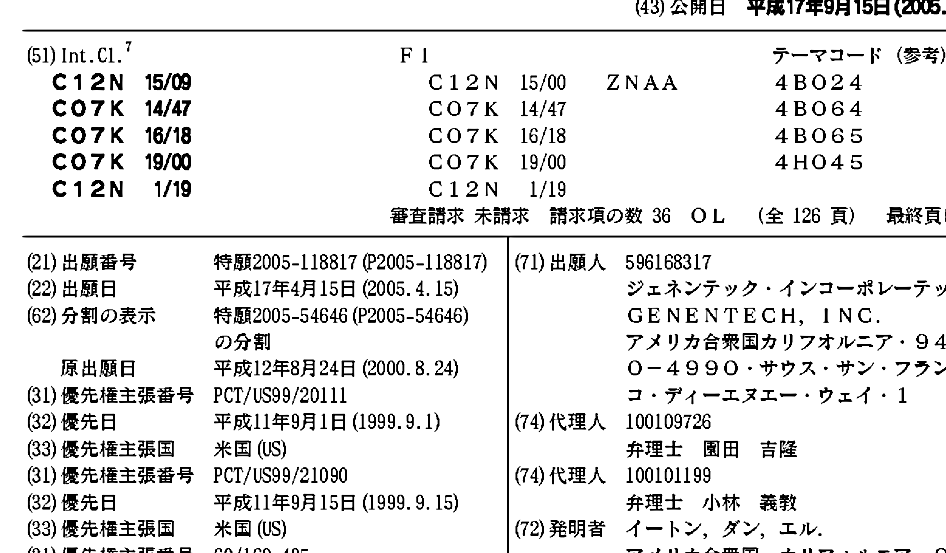 AU2000075730A1 | CA2380355A1 | EP1208202A2 | JP2004507204A | JP2004507204A5 | JP2005224245A | JP2005245460A | JP2005245460A5 | JP2005253468A | JP2005253469A | JP2005253469A5 | JP2005261437A | JP2005270107A | JP2009095345A | JP3951035B2 | WO2001016318A2 | WO2001016318A3