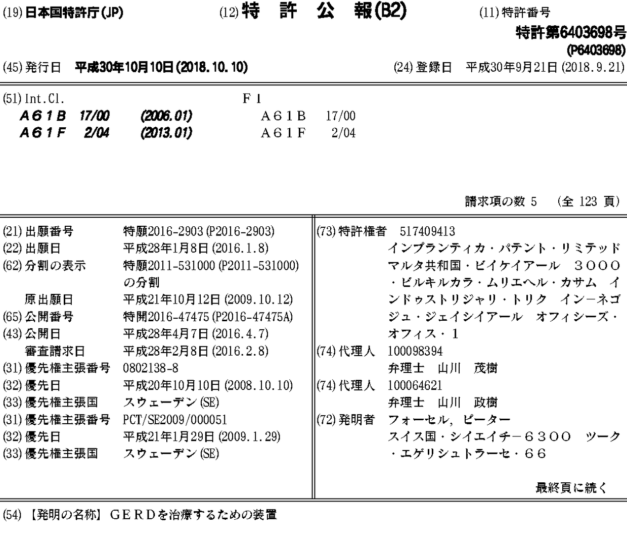 インプランティカ·パテント·リミテッド