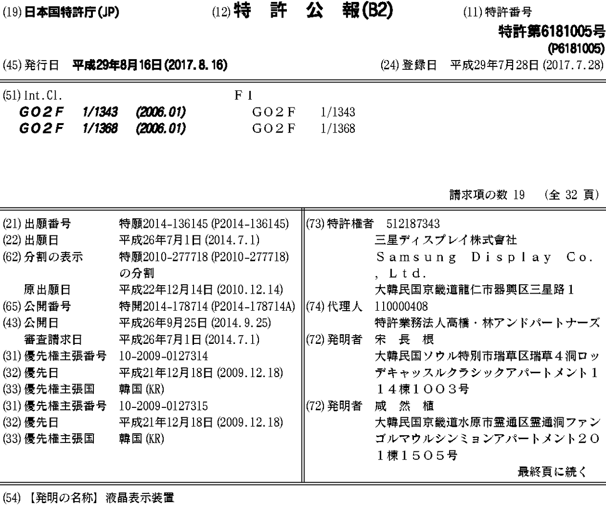 CN102103295A | CN102103295B | CN105116638A | CN105116638B | JP2011128618A | JP2014178714A | JP5774846B2 | JP6181005B2 | TW201133072A | TW201602684A | TWI509317B | TWI561895B | US10488726 | US20110149186A1 | US20140313447A1 | US20170261829A1 | US20190285956A1 | US8804081 | US9664968