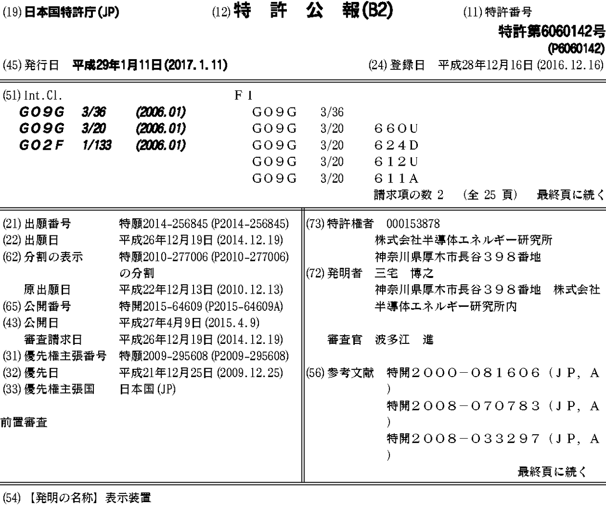 JP2011150307A | JP2011150307A5 | JP2015064609A | JP2016200833A | JP2019003222A | JP2019194736A | JP5671323B2 | JP6060142B2 | JP6415491B2 | JP6568283B2 | KR101541474B1 | KR101613701B1 | KR1020120101715A | KR1020140104039A | TW201133463A | TW201602996A | TWI514353B | TWI640975B | US10255868 | US20110157131A1 | US20150255043A1 | US20180190219A1 | US9852703 | WO2011077925A1