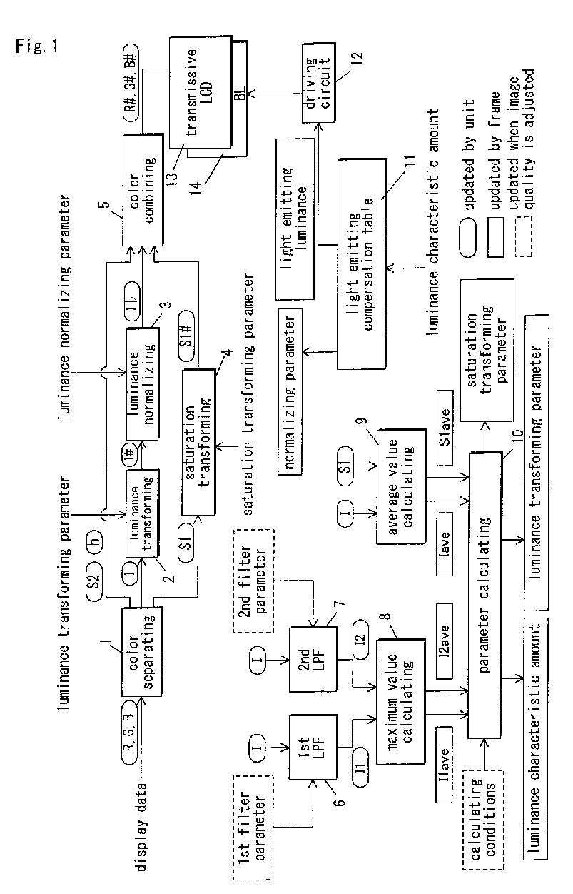 Image display method and apparatus comprising luminance adjustment of a light source
