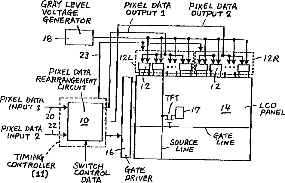 Liquid crystal display unit having incoming pixel data rearrangement circuit