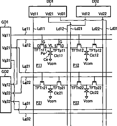 Liquid crystal display with separate positive and negative driving circuits
