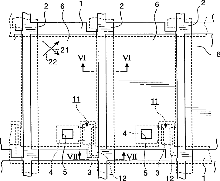 Liquid crystal display device in which neighboring pixel electrodes overlap source line by different widths