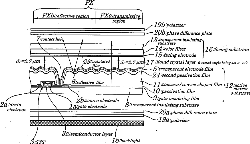 Semi-transmissive-type liquid crystal display device and method for manufacturing same
