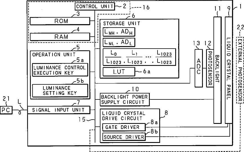 Luminance control method, liquid crystal display device and computer program