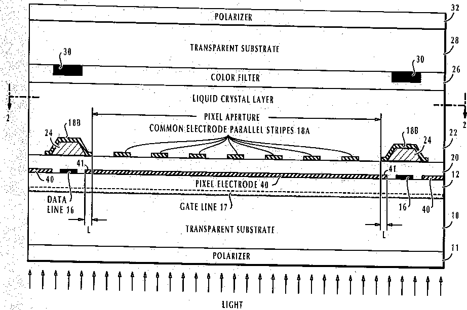 High aperture ratio in-plane switching mode active matrix liquid crystal display unit