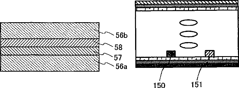 Liquid crystal display device having a pair of electrodes over an inner side of a substrate of a liquid crystal element in which a stack of polarizers on the outer side of a substrate are provided and arranged between a pair of protective layers such that no protective layer is located between the stacked polarizers