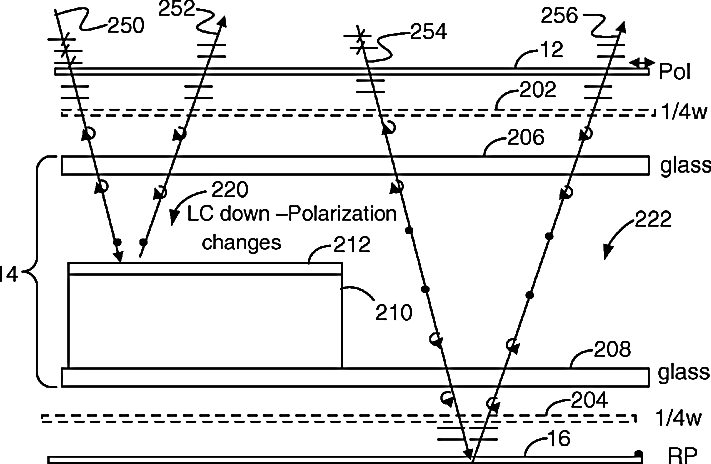 Transflective LC display with internal reflector and reflective polarizer