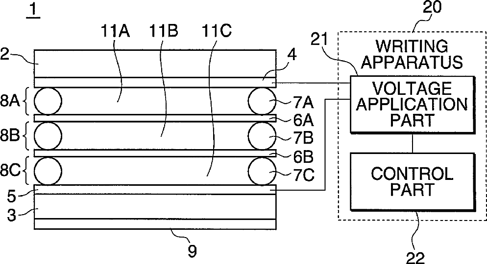 Display element, writing method and writing apparatus
