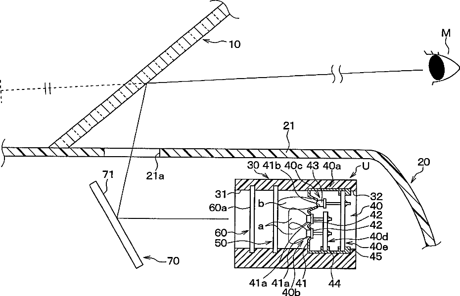 Displaying device for vehicle having light sources of different directivities