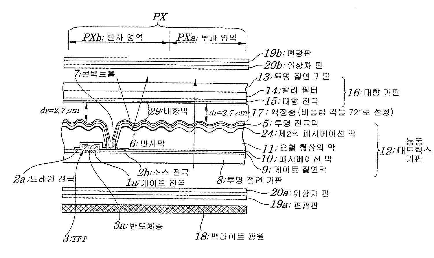 반 투과형 액정 디스플레이 장치 및 그 제조 방법