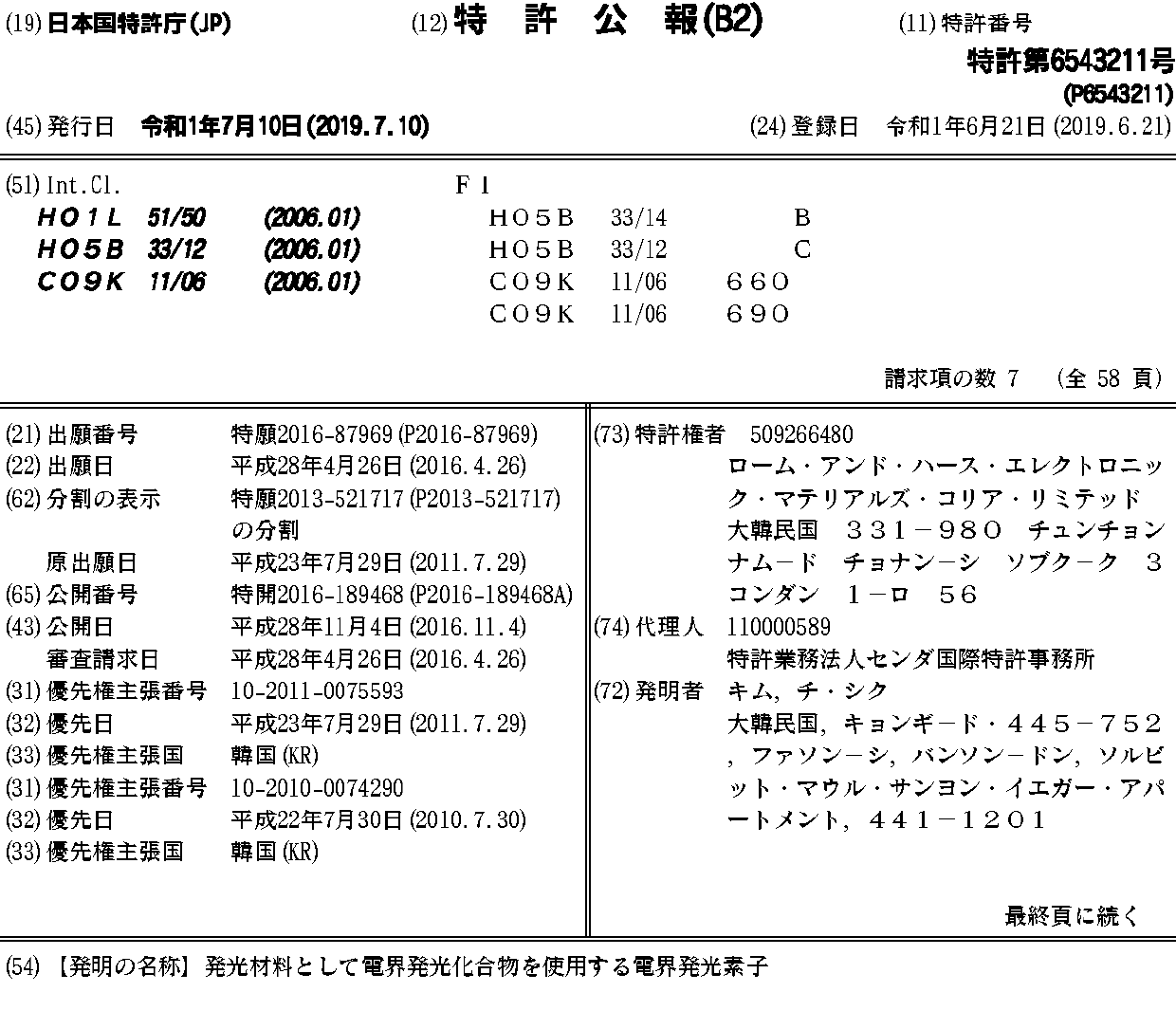 CN103140564A | CN103140564B | EP2599851A2 | EP2599851A4 | EP2806008A1 | EP2857395A1 | EP2905281A1 | JP2013539206A | JP2013539206A5 | JP2016189468A | JP2019195074A | JP6543211B2 | KR1020120012431A | KR1020140051871A | KR1020140051872A | KR1020140058454A | TW201300501A | US20140054564A1 | WO2012015274A2 | WO2012015274A3