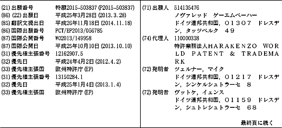 CN104321406A | CN104321406B | EP2834321A1 | EP2834321B1 | JP2015518653A | KR1020150002740A | TW201400468A | US20150115241A1 | WO2013149958A1