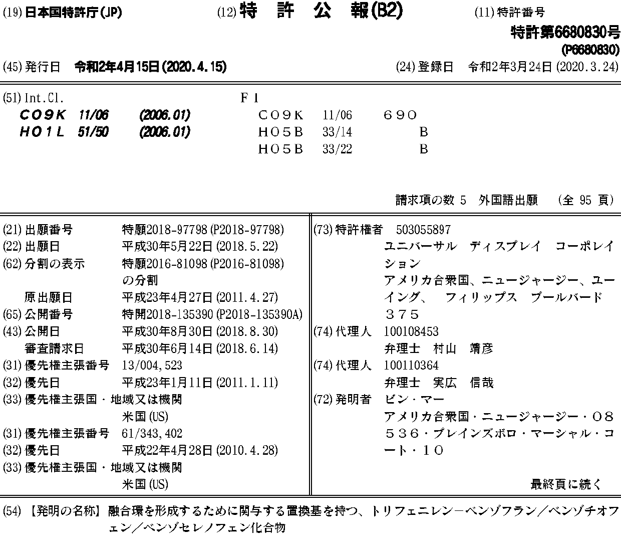 ユニバーサル ディスプレイ コーポレイション