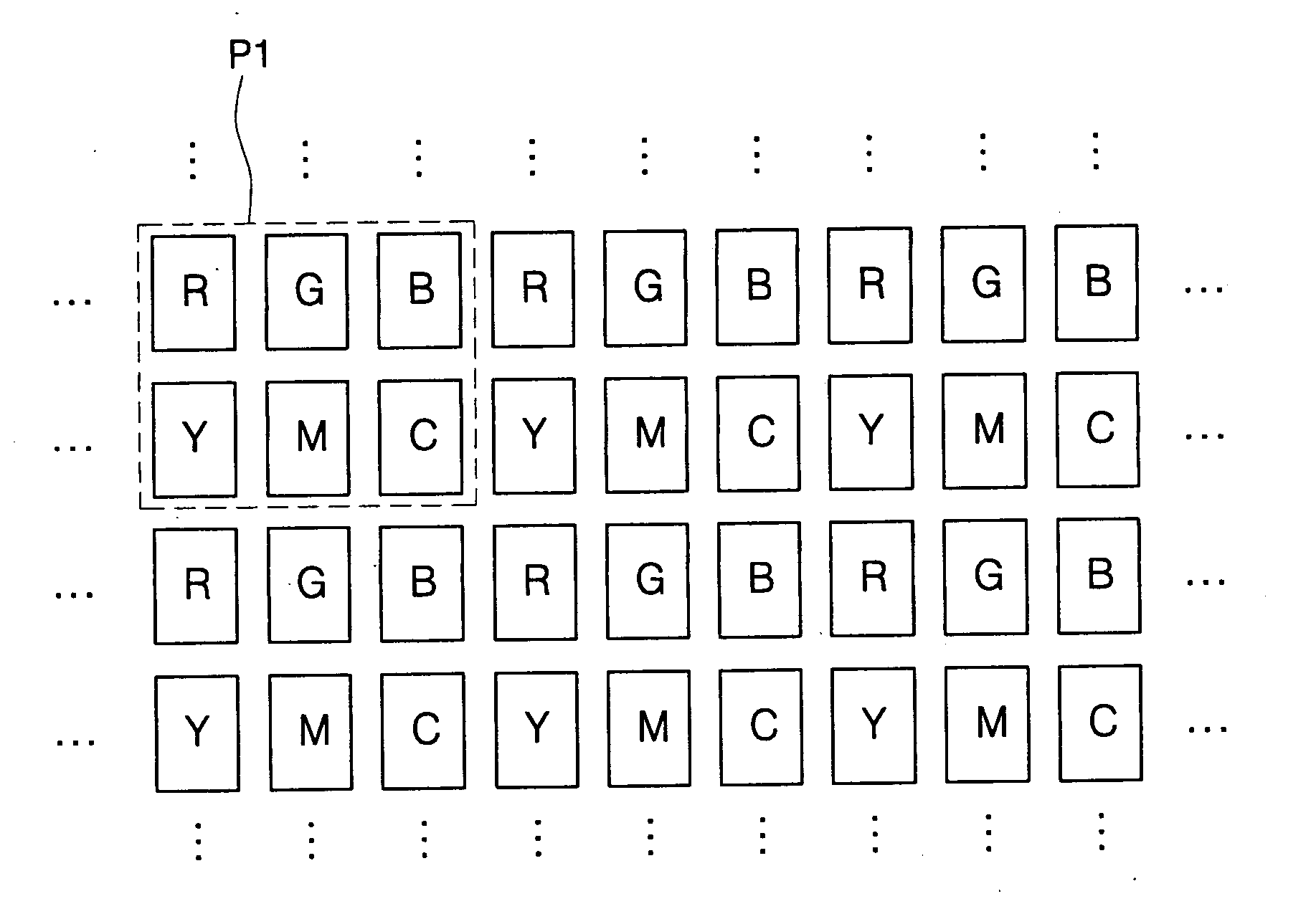 Full-color organic light emitting display having red, green, blue, cyan, magenta, and yellow color modulation layers