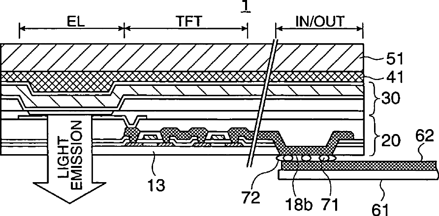 Organic EL display device, electronic equipment, and method for manufacturing the same