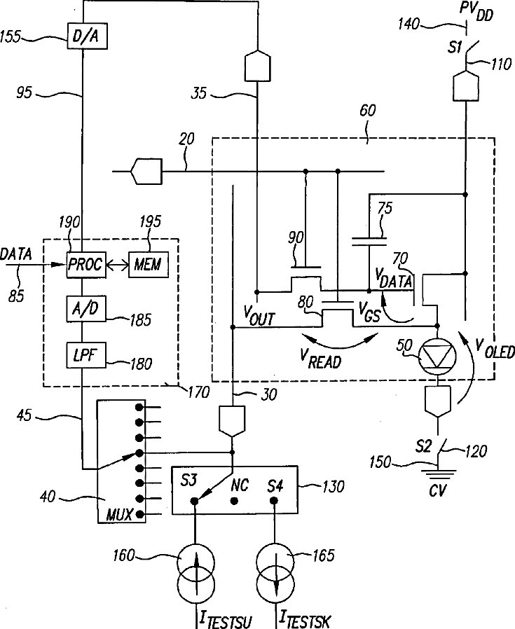 OLED display with aging and efficiency compensation