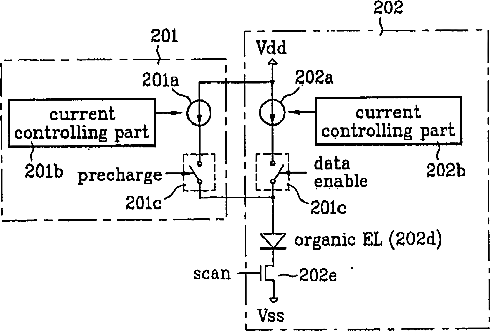 Circuit and method for driving display of current driven type