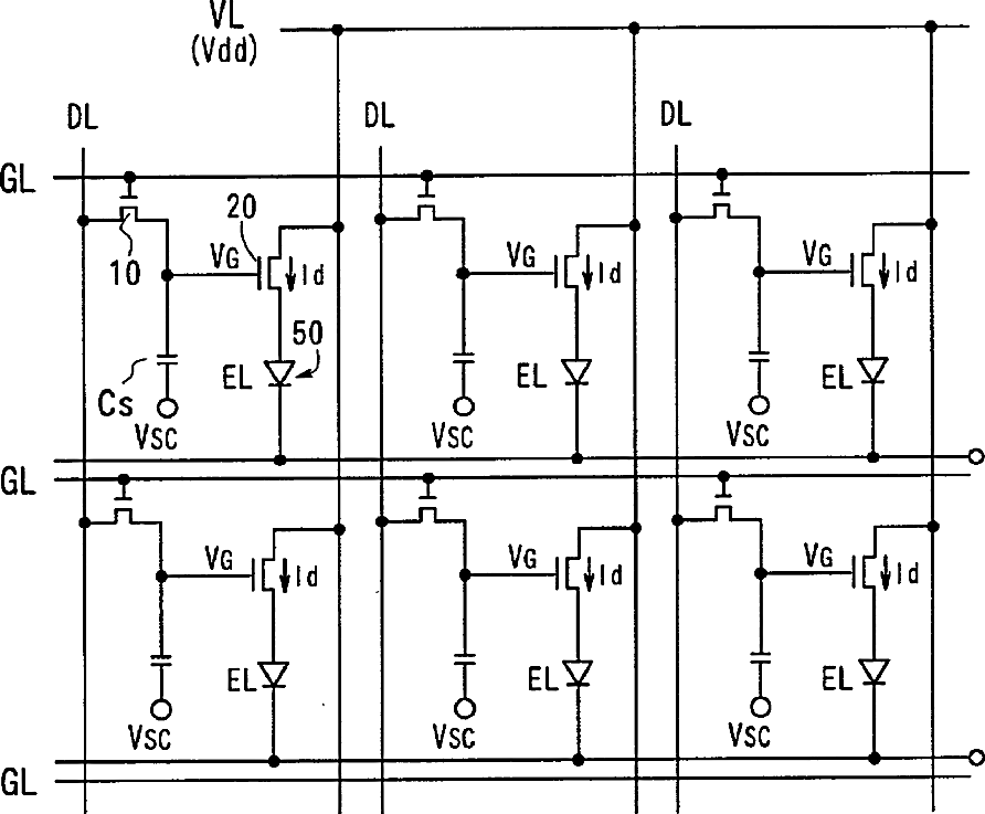 Display device having driven-by-current type emissive element