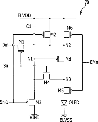 Oled pixel configuration for compensating a threshold variation in the driving transistor, display device including the same, and driving method thereof