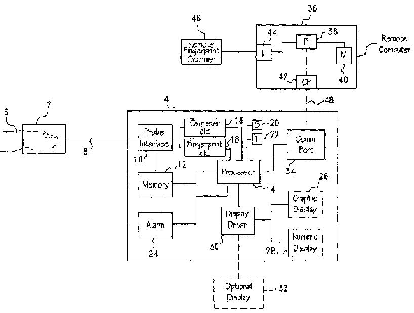 指紋装置とオキシメータ装置とを組み合わせた装置