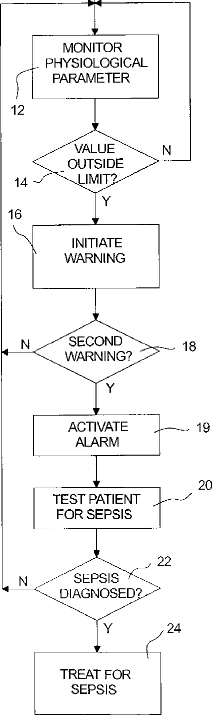 Method for continuous monitoring of patients to detect the potential onset of sepsis