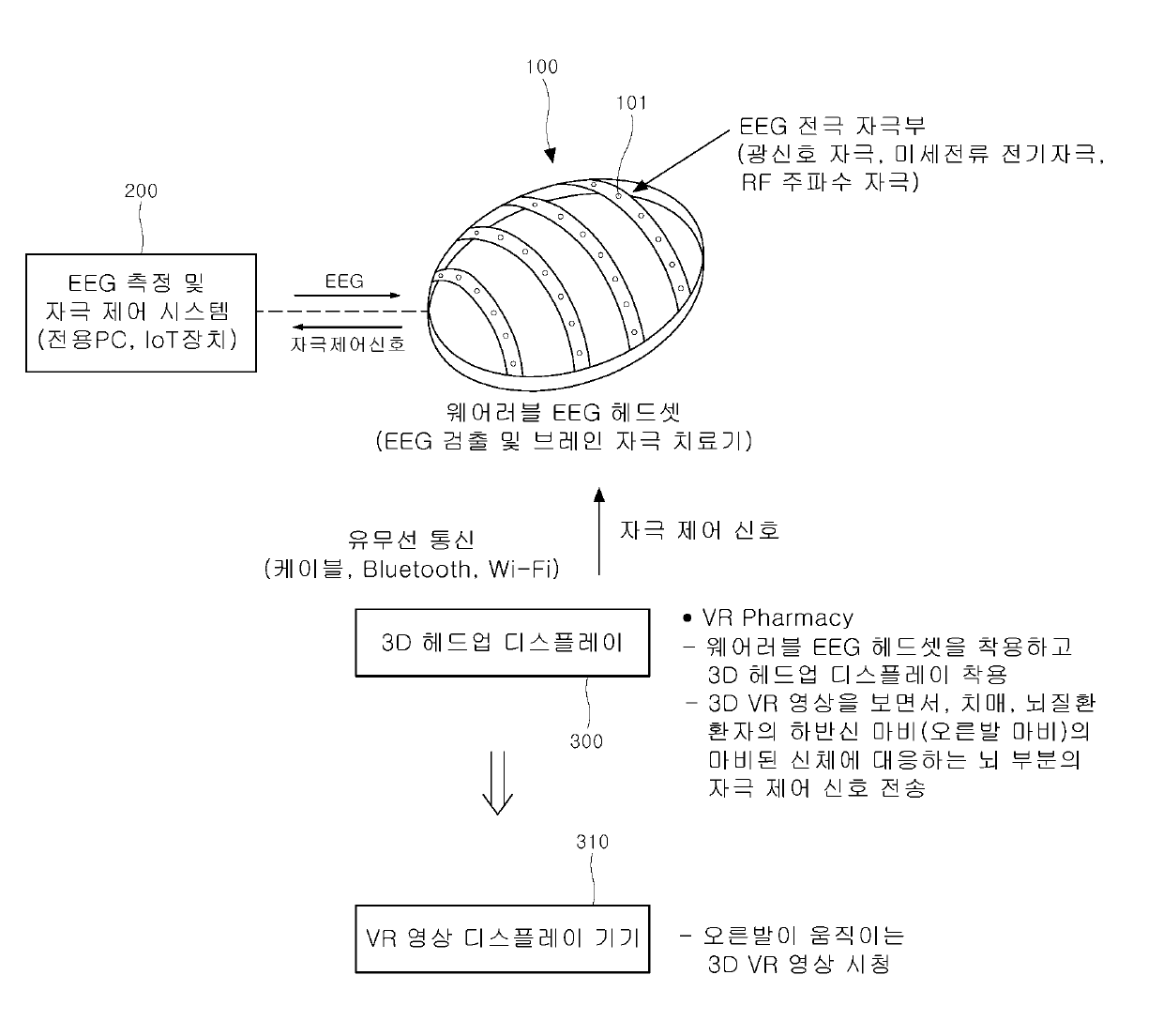 3D 헤드업 디스플레이와 연동된 웨어러블 EEG 헤드셋을 구비하는 EEG 측정 및 자극 시스템 및 방법