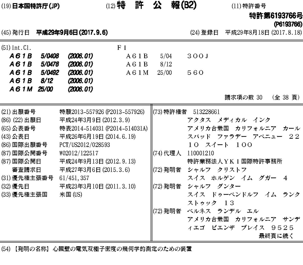 AU2012225250A1 | AU2012225250B2 | AU2017201560A1 | AU2017201560B2 | CA2829626A1 | CA2829626C | EP2683293A2 | EP2683293B1 | JP2014514031A | JP2014514031A5 | JP2018008075A | JP2018089414A | JP6193766B2 | JP6294548B2 | JP6550486B2 | US10314497 | US20140121470A1 | US20180055374A1 | US20180271381A1 | US20190343401A1 | US9757044 | US9968268 | WO2012122517A2 | WO2012122517A3