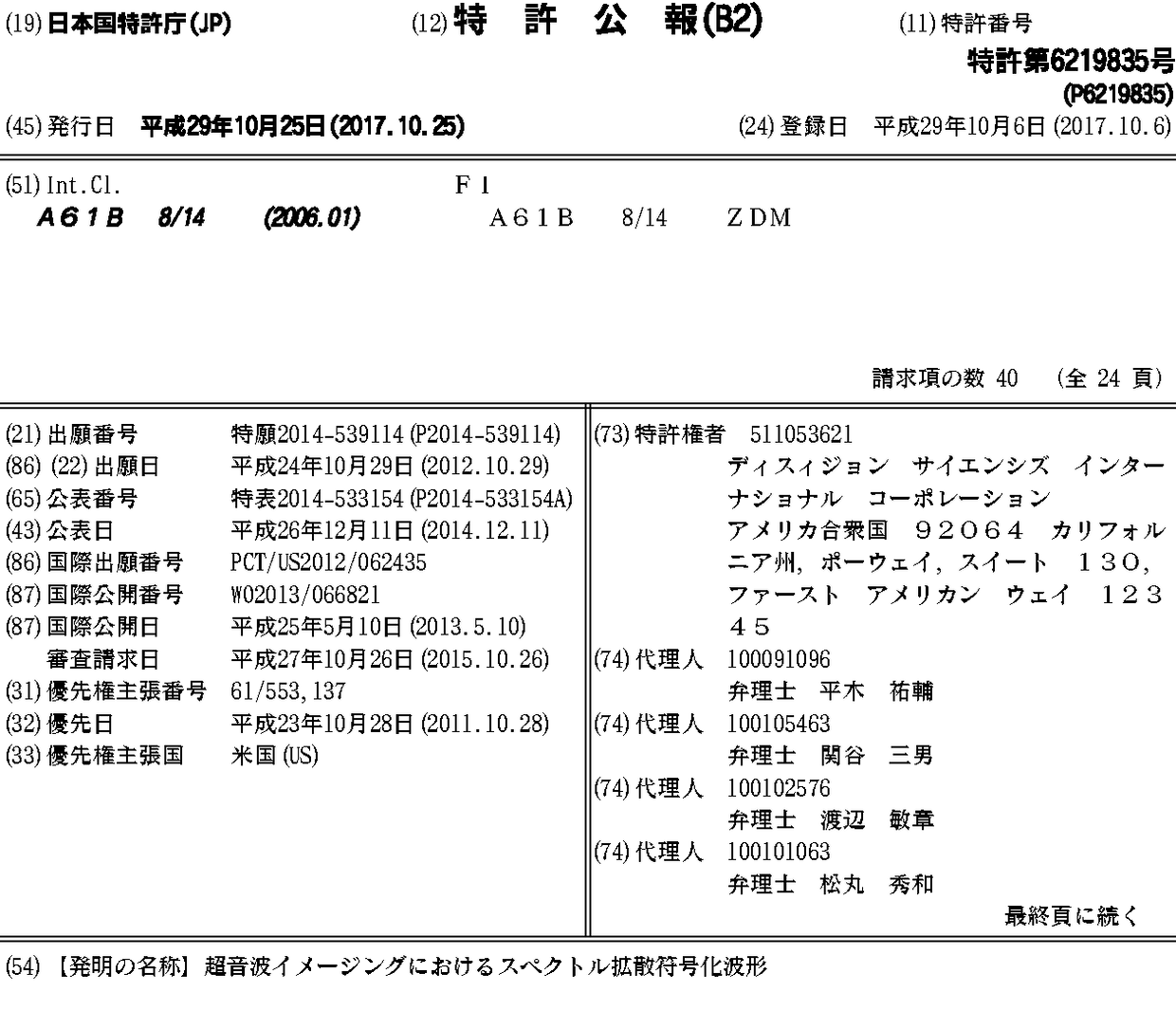 AR088794A1 | AU2012332817A1 | AU2012332817B2 | AU2017204431A1 | AU2017204431B2 | AU2017268559A1 | AU2017268559B2 | AU2018203785A1 | AU2018203785B2 | CA2852801A1 | CA2852801C | CN104169739A | CN104169739B | EP2771712A2 | EP2771712A4 | IL232148A | IL232148D0 | JP2014533154A | JP2018011997A | JP6219835B2 | JP6682487B2 | SG11201401833UA | US10085722 | US20130123635A1 | US20150133787A1 | US20160345940A1 | US20180153518A1 | US20190167234A1 | US8939909 | US9420999 | US9872667 | WO2013066821A2 | WO2013066821A3