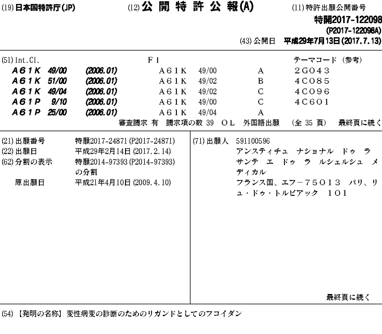 変性病変の診断のためのリガンドとしてのフコイダン