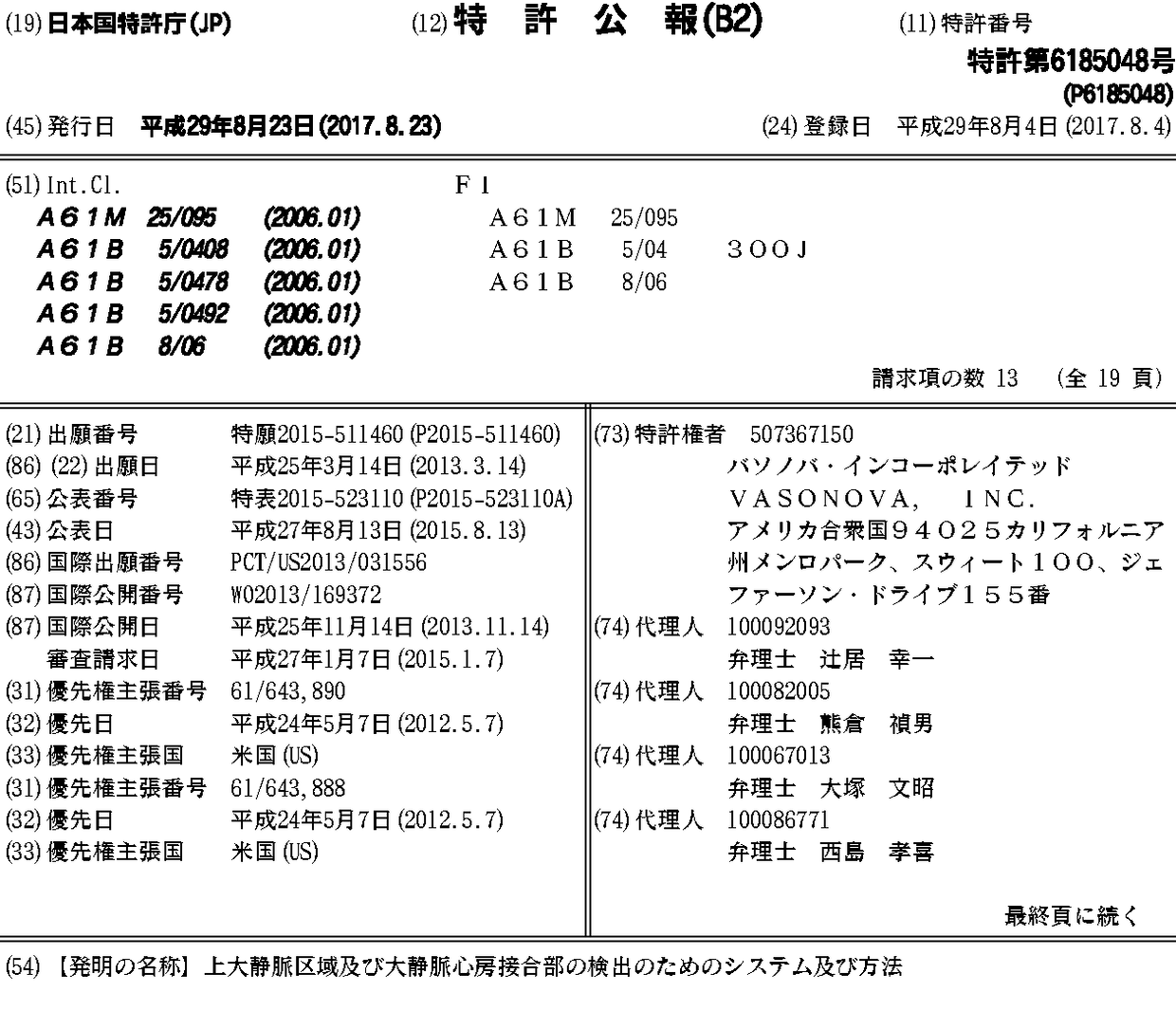 EP2846686A1 | EP2846686A4 | EP2846686B1 | EP2846701A1 | EP2846701A4 | JP2015515910A | JP2015523110A | JP6088046B2 | JP6185048B2 | US20130296693A1 | US20130296725A1 | US20160256224A1 | US8965490 | US9345447 | US9743994 | WO2013169371A1 | WO2013169372A1